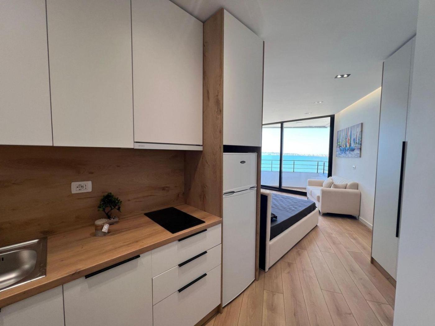 One-Bedroom Apartment with Balcony and Sea View. Featuring a private entrance, this air-conditioned apartment comprises a kitchenette, 1 bedroom and 1 bathroom with a walk-in shower and a hairdryer. The well-fitted kitchenette features a stovetop, a refrigerator and kitchenware. Boasting a terrace with sea views, this apartment also provides a seating area and a flat-screen TV with satellite channels. The unit offers 1 bed.