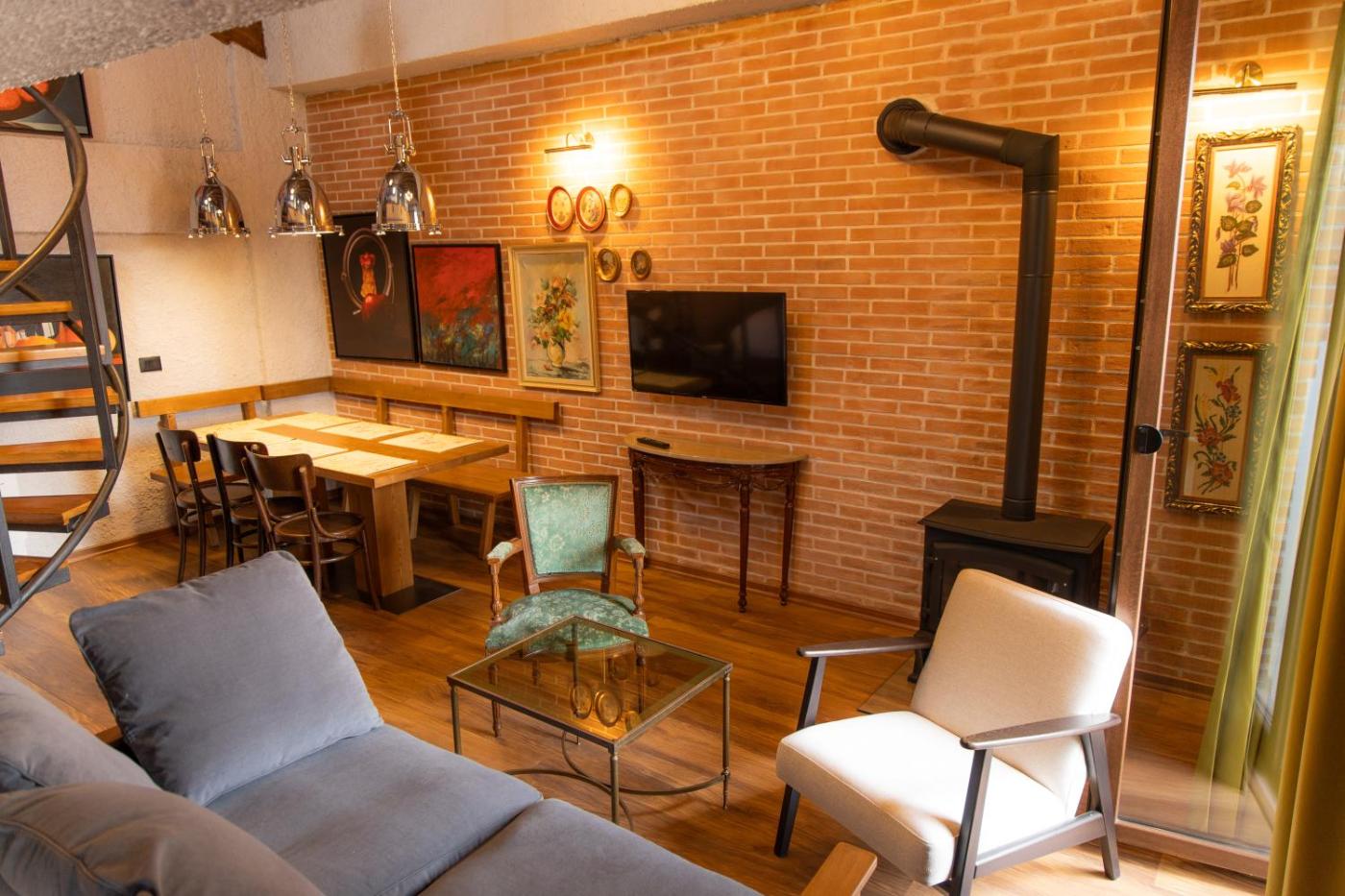 One-Bedroom Apartment. This apartments special feature is the fireplace. This air-conditioned apartment comprises 1 living room, 1 separate bedroom and 1 bathroom with a shower. The apartments kitchen is available for cooking and storing food. The apartment provides a sofa, parquet floors, heating and a flat-screen TV. The unit offers 2 beds. ;