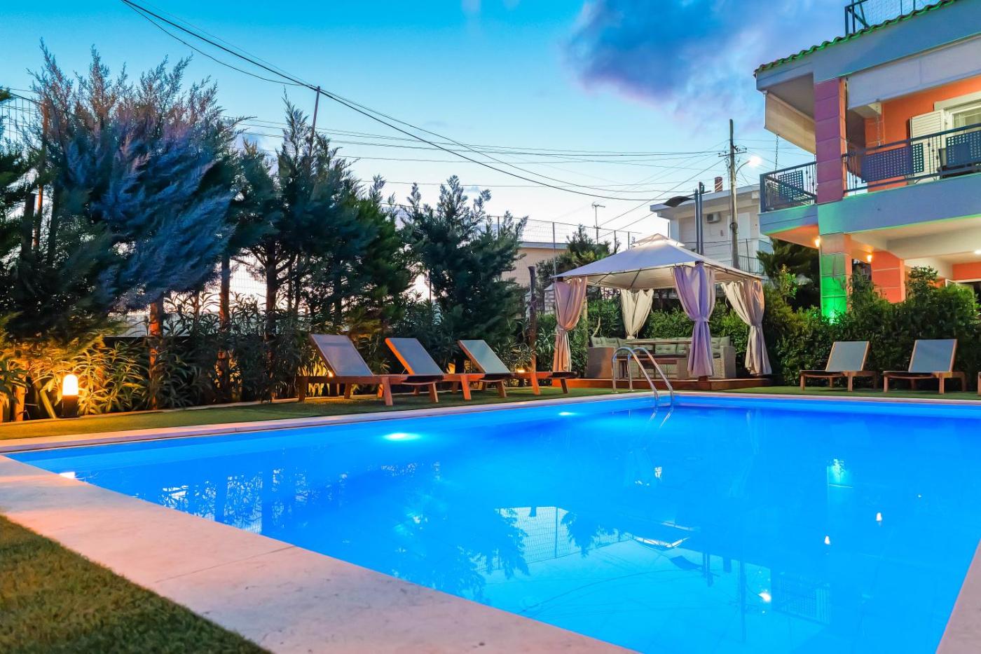 Located in Sarandë, Villa Vrion provides accommodation with private pool, free WiFi and free private parking for guests who drive. The air-conditioned accommodation is 50 km from Ancient Fanoti. Guests can make use of a garden.