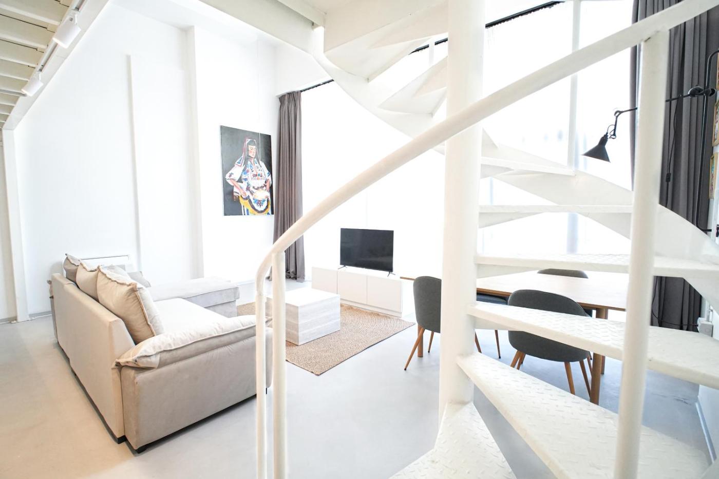 Loft. Featuring a private entrance, this air-conditioned apartment consists of 1 living room, 1 separate bedroom and 1 bathroom with a walk-in shower and a hairdryer. Meals can be prepared in the kitchen, which is equipped with a stovetop, a refrigerator, an oven and a microwave. The spacious apartment provides a flat-screen TV, a washing machine, a seating area, a dining area as well as city views. The unit offers 3 beds. ;